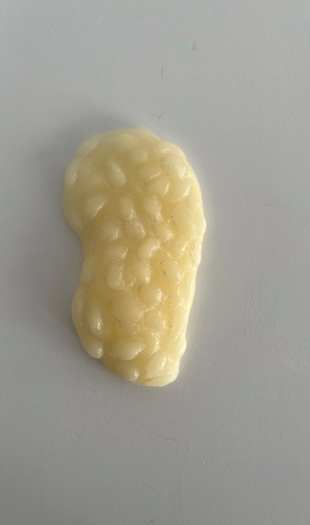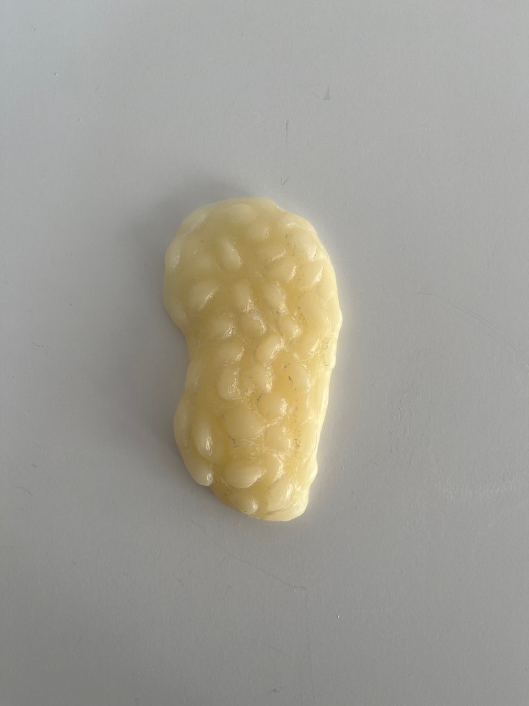 wax beans, 2024. casted from clay. an exploration into casting something with a liquid element.